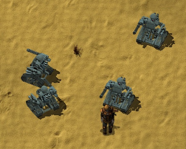 The firebot is a mid-late game unit which has more health than a normal battle droid, and carries a flamethrower for a weapon. This bot can cause forest fires and the messy results of their weapons can harm weaker friendly bots! The Firebot works well in mixed squads with rocket-bots or in late-game as swarm-killing support for terminators. Firebots are 100% immune to fire damage so they will happily co-exist in large groups.