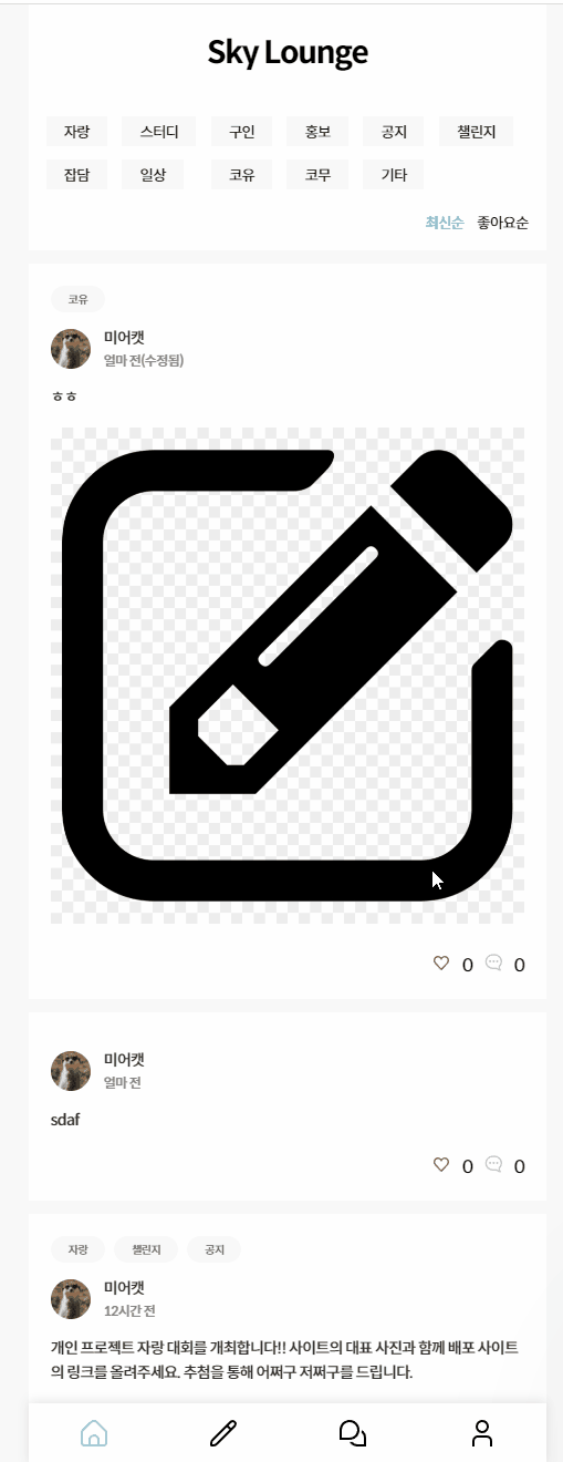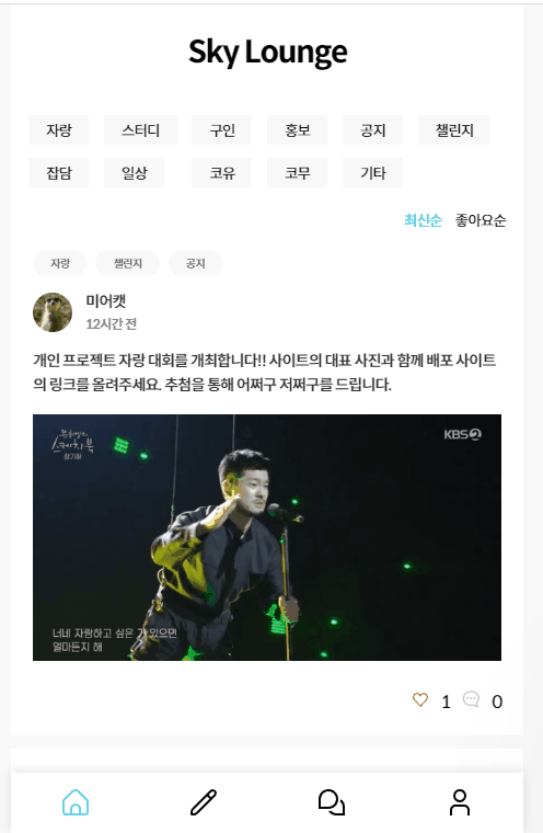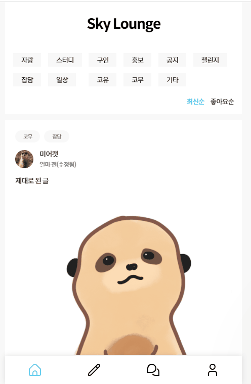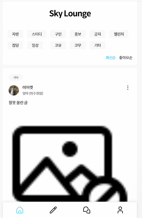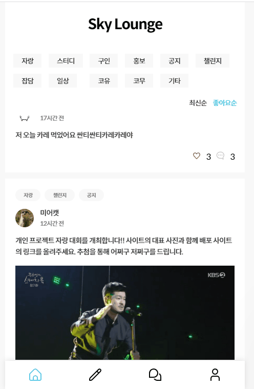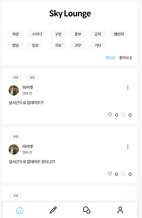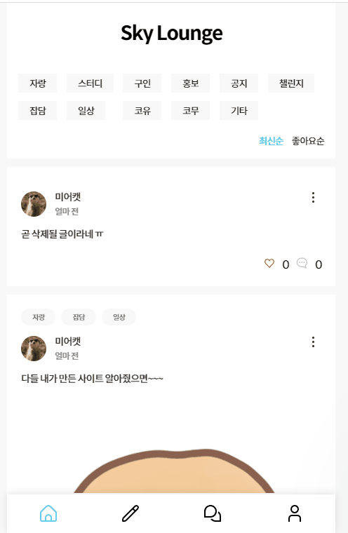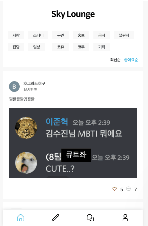 개발자 모임공간 커뮤니티 Sky Lounge입니다.