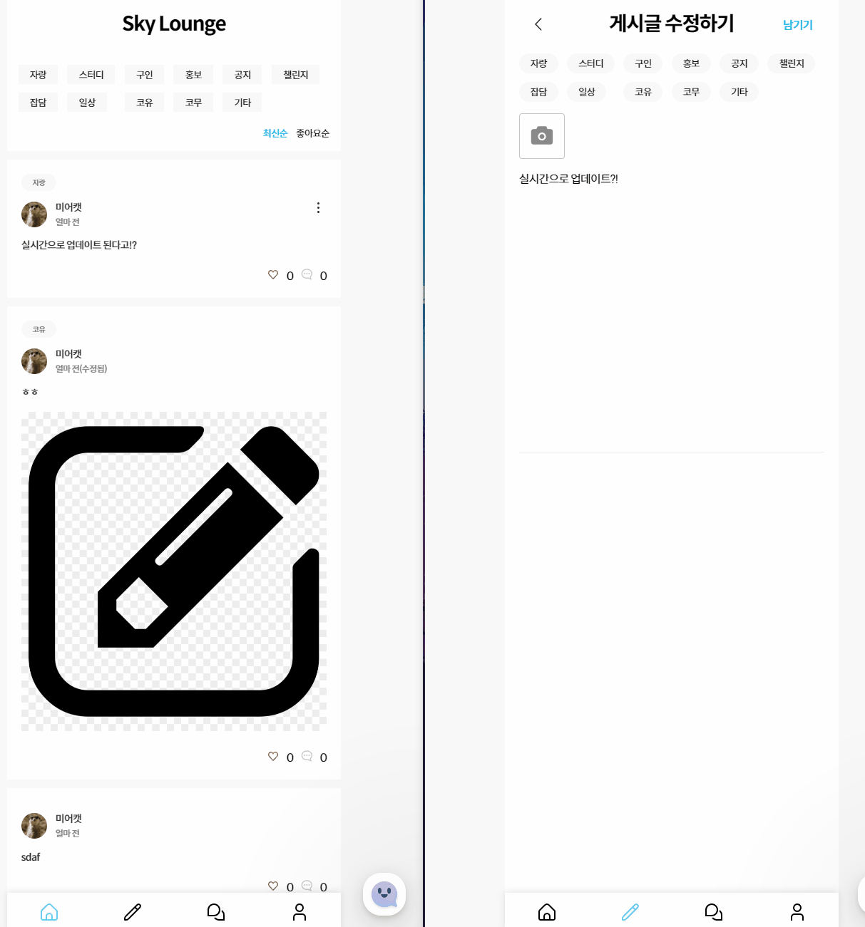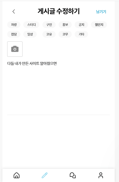 해당 게시글 작성자는 게시글을 수정할 수 있습니다. 게시글 생성과 동일한 작업을 수행할 수 있습니다.