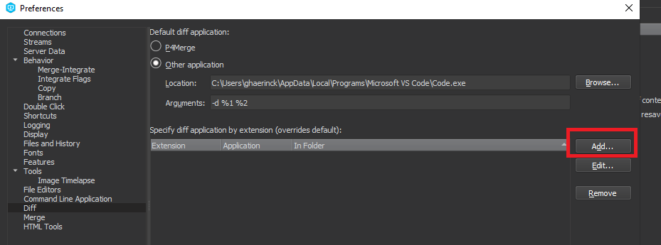 In P4v click in “Edit/Preferences”
