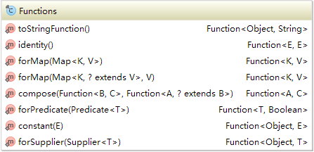- Functions 函数工具类,通过内部类提供了很多实用函数(结尾带s的都是工厂模式)