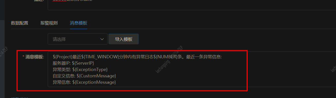 注意:使用者需要根据自己的日志格式指定消息模板,不能直接套用我们的,因为大家日志格式都不一样。关于消息模板如何定制,请看文档:消息模板配置