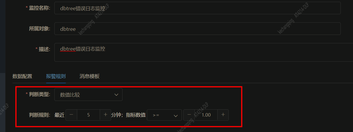 表示最近5分钟查出来的日志数量大于1就报警