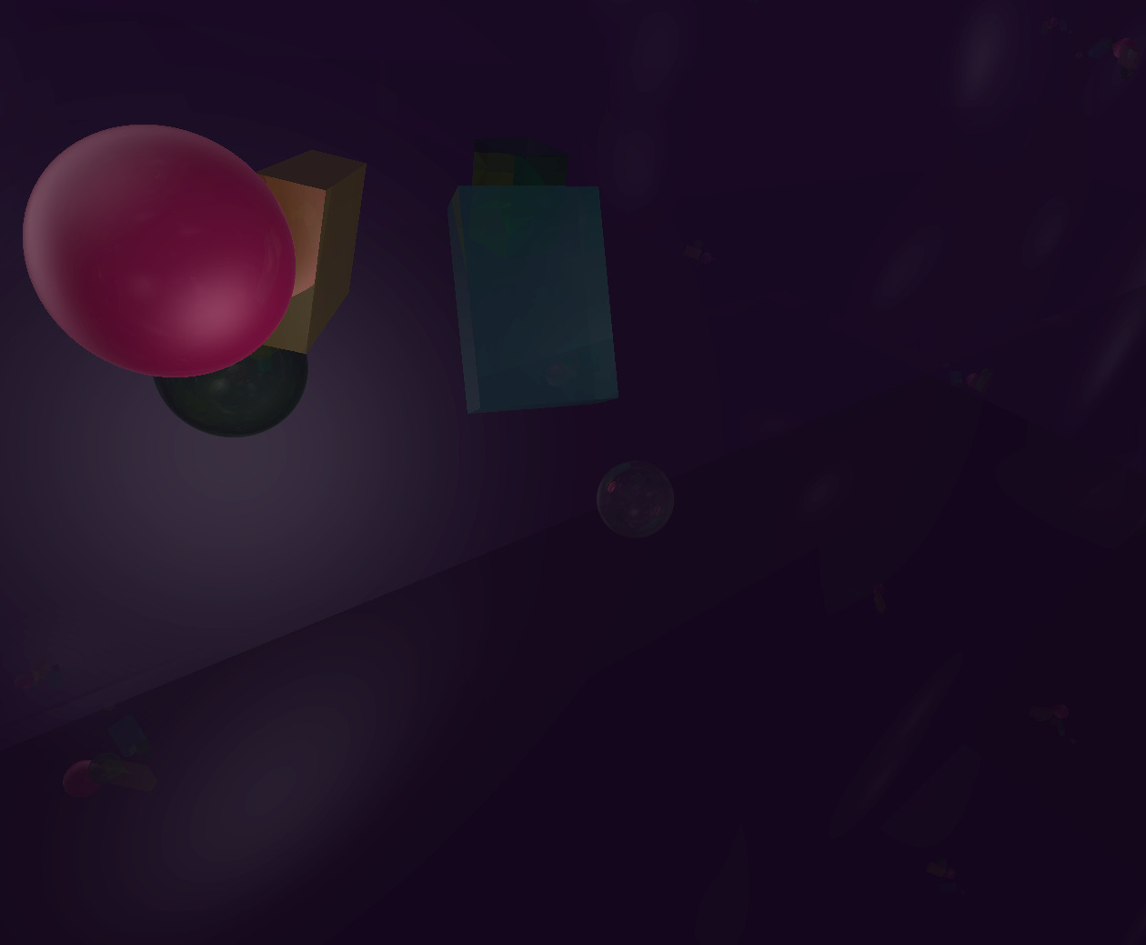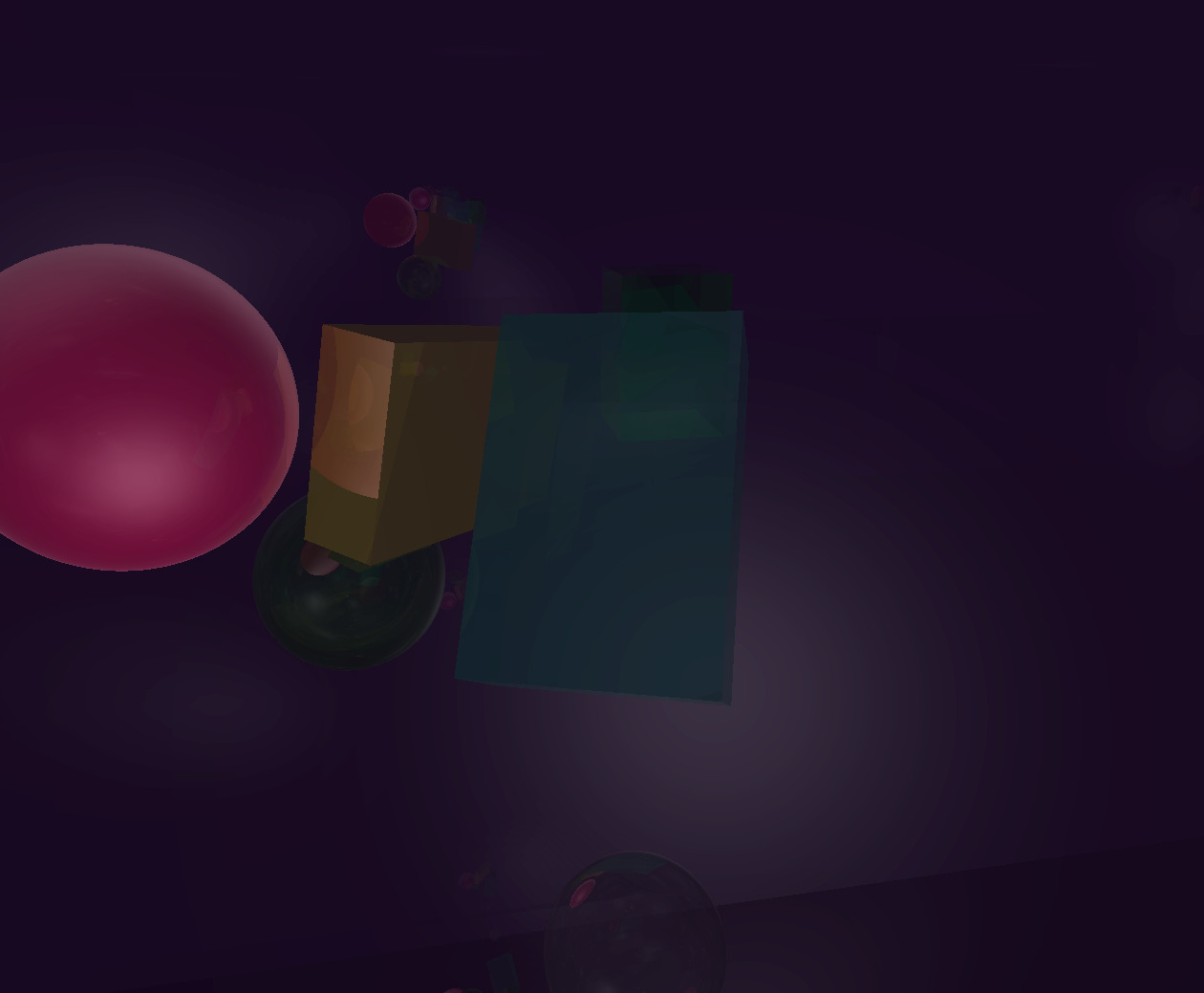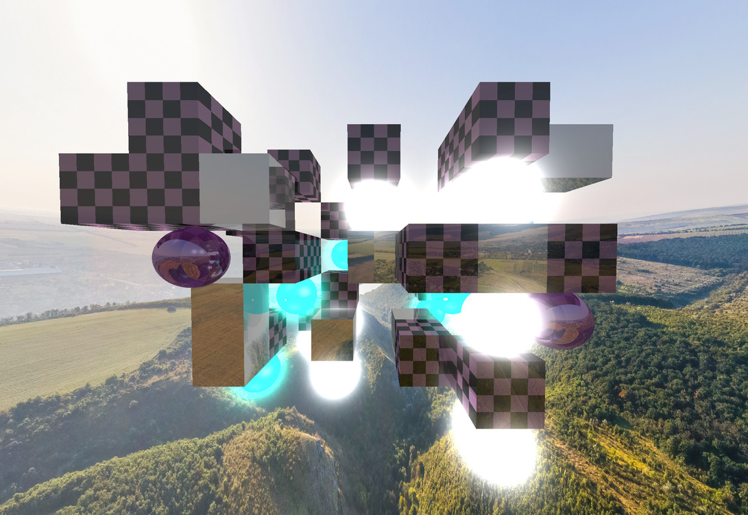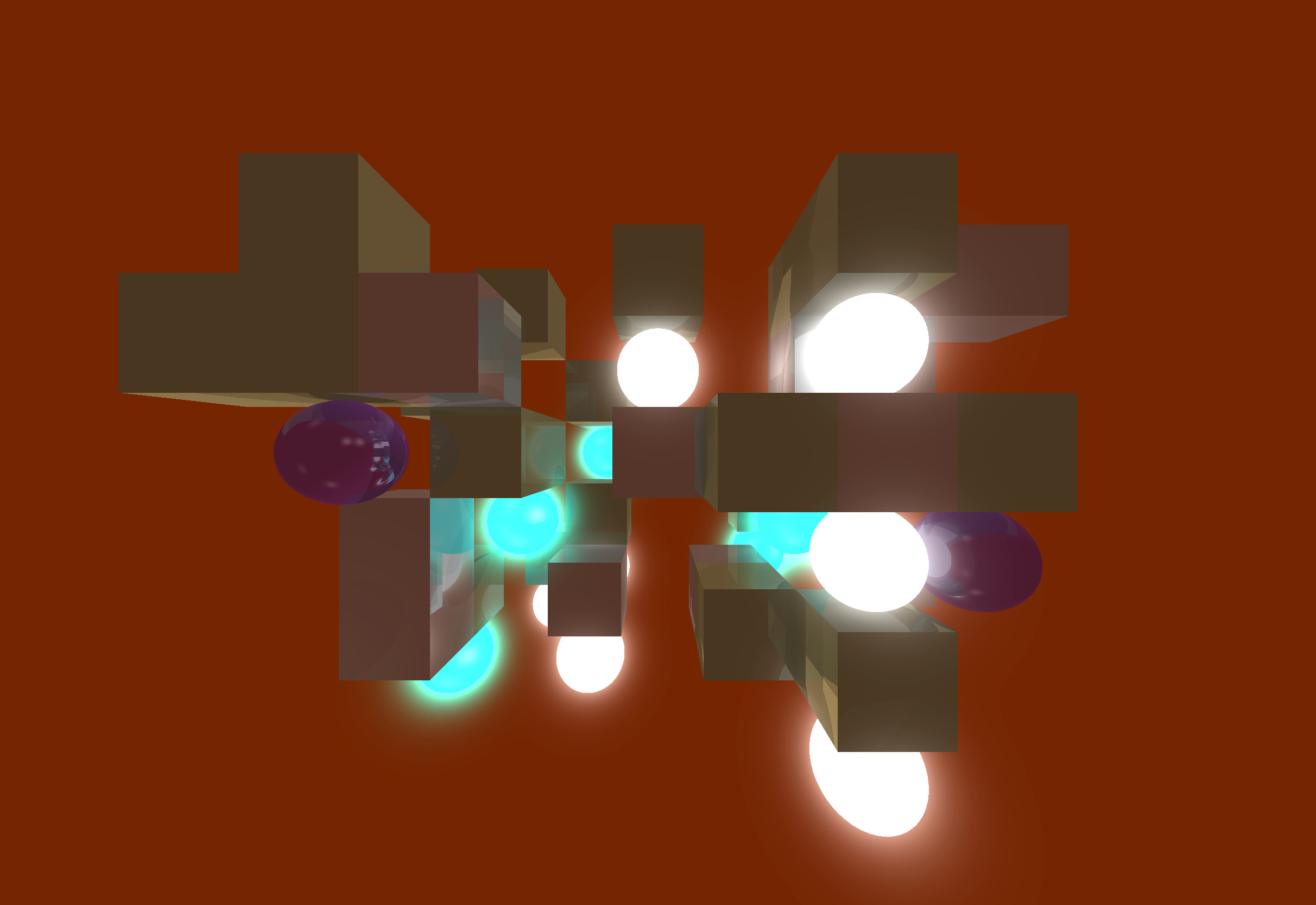 Emissive spheres in a randomly generated arrangement of cubes. | ✓ |