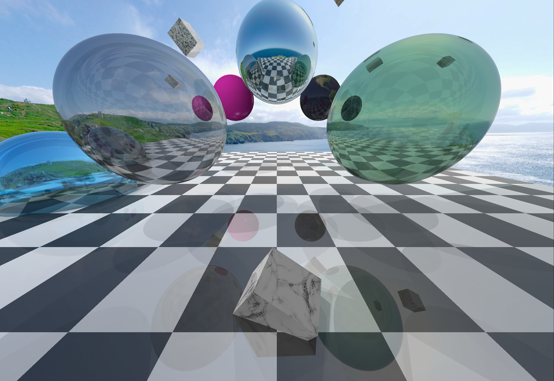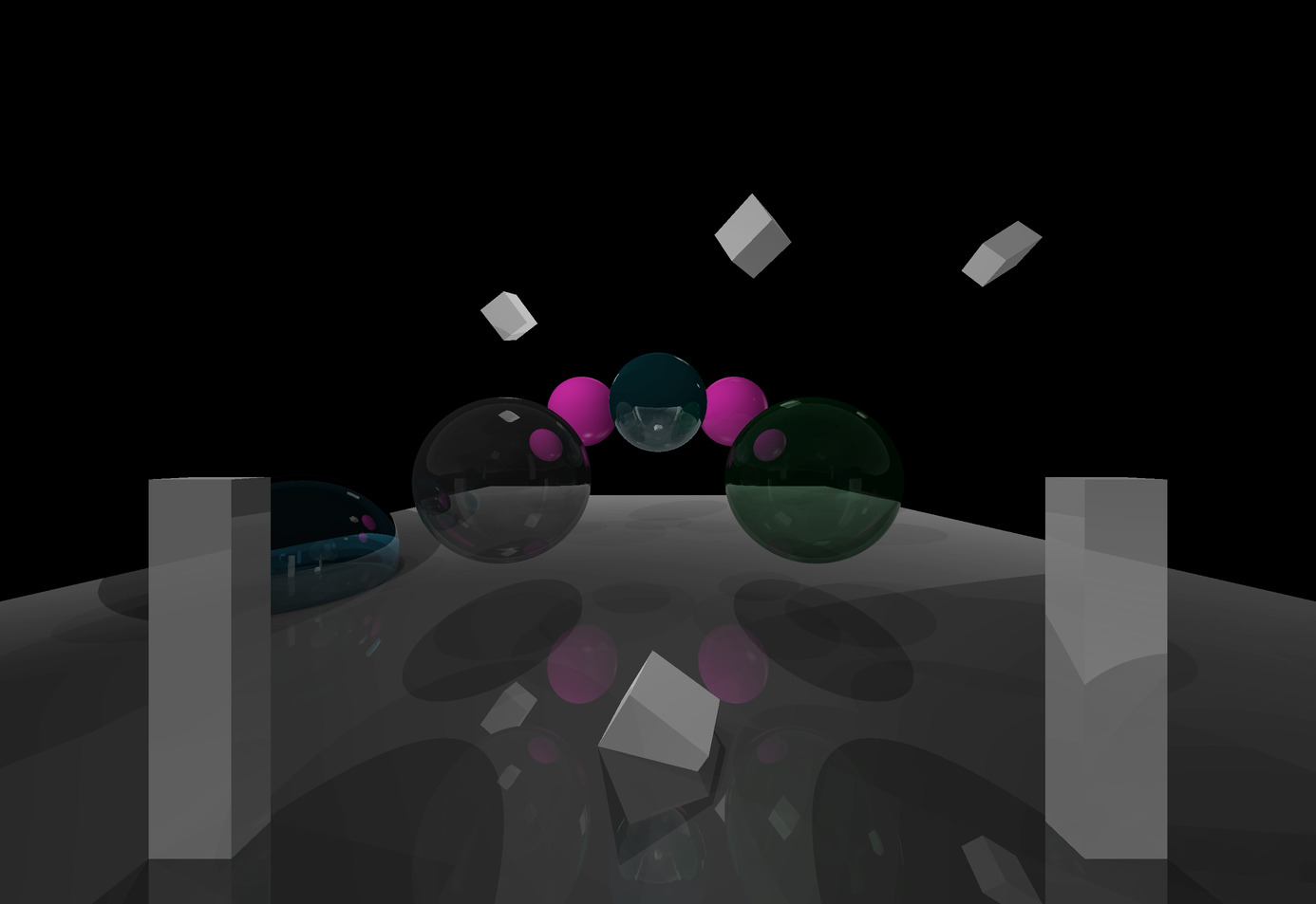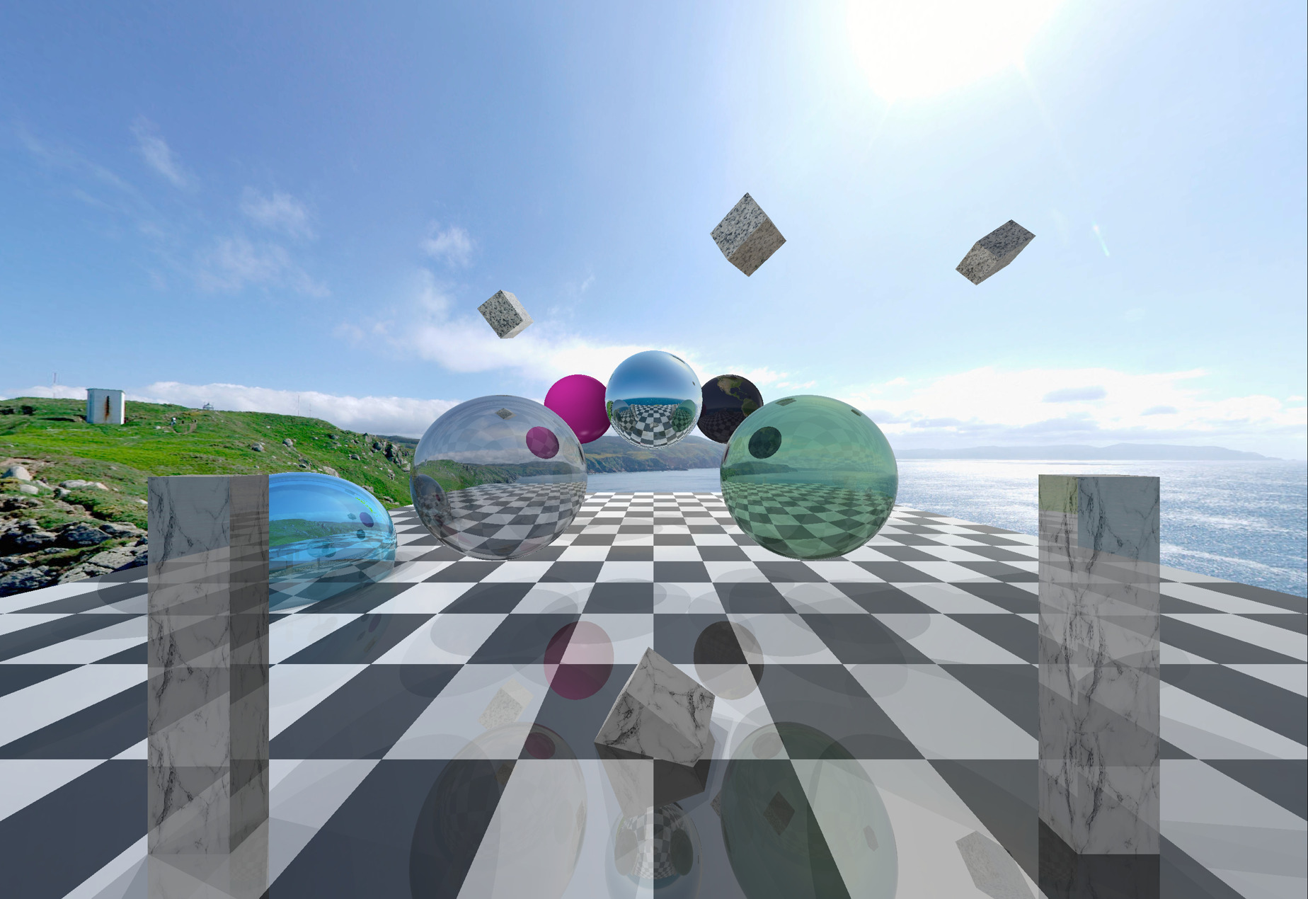 Emissive spheres in a randomly generated arrangement of cubes. | ✓ |