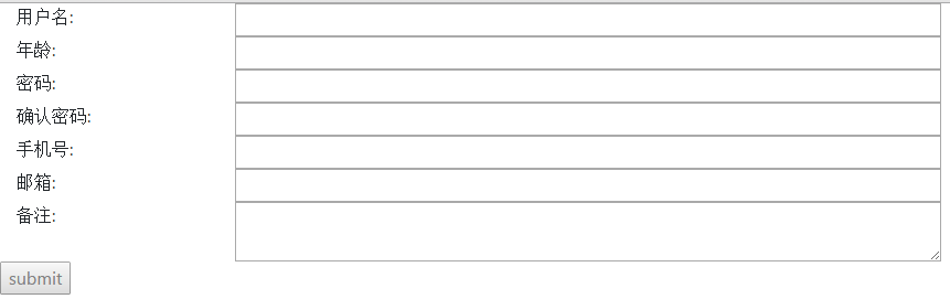 表单内容如下图,包括常用的用户名、密码、确认密码、手机、邮箱等