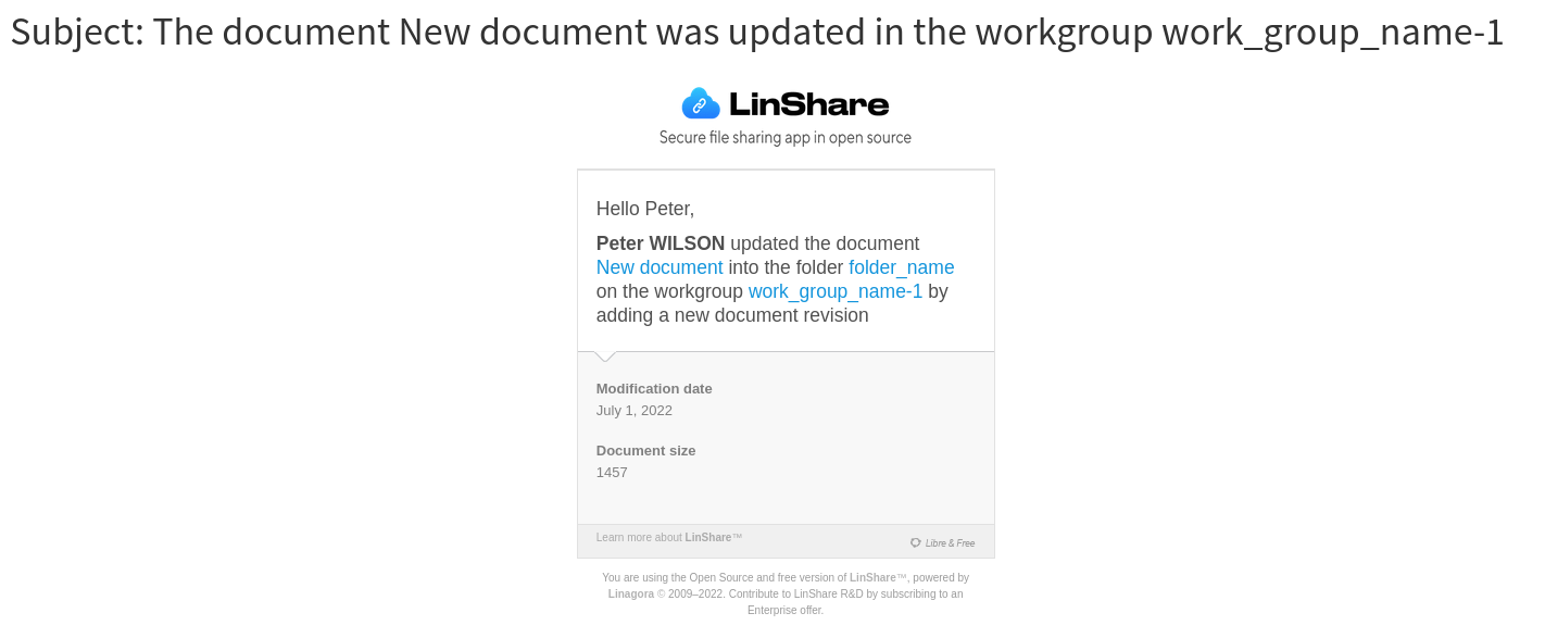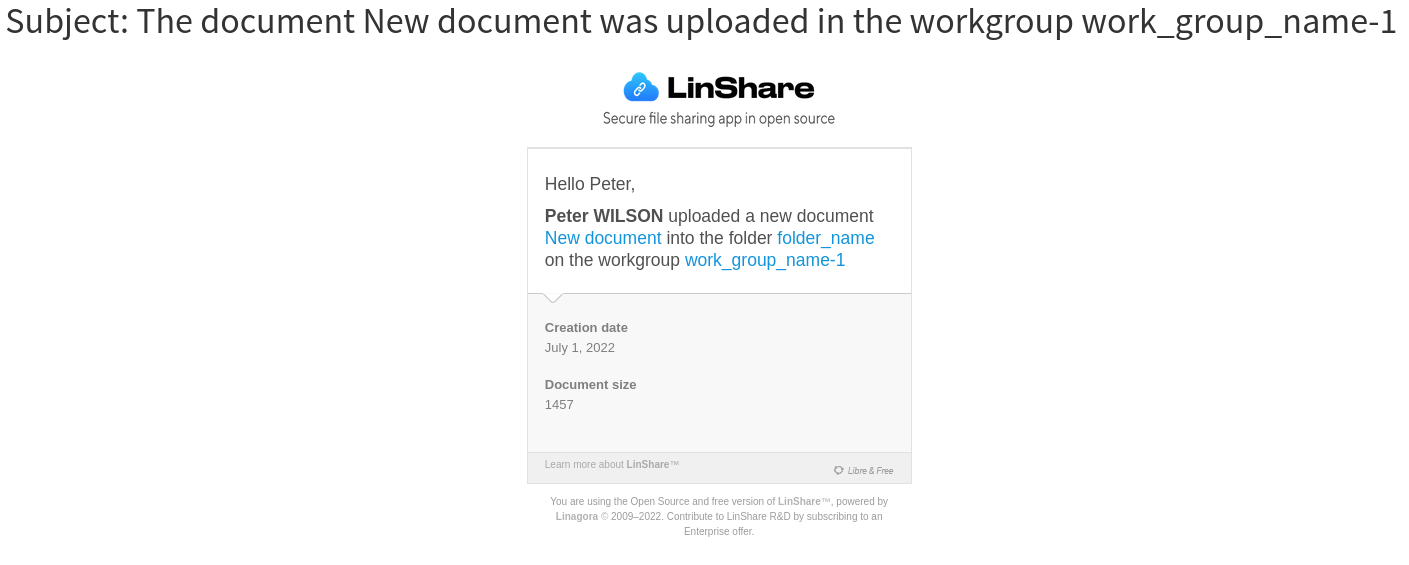 - Shared space (aka groups in LinShare v1)