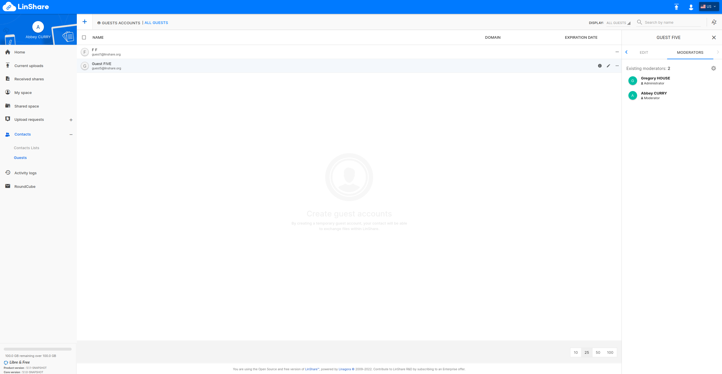 Guests Create guests accounts to provide a LinShare account for your external contacts.