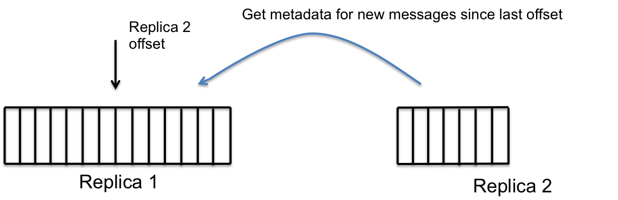 Initially, replica 2 has a subset of messages in replica1. Also, replica 2 remembers the offset in replica 1 till which it has seen the content and replicated them locally if they were missing.