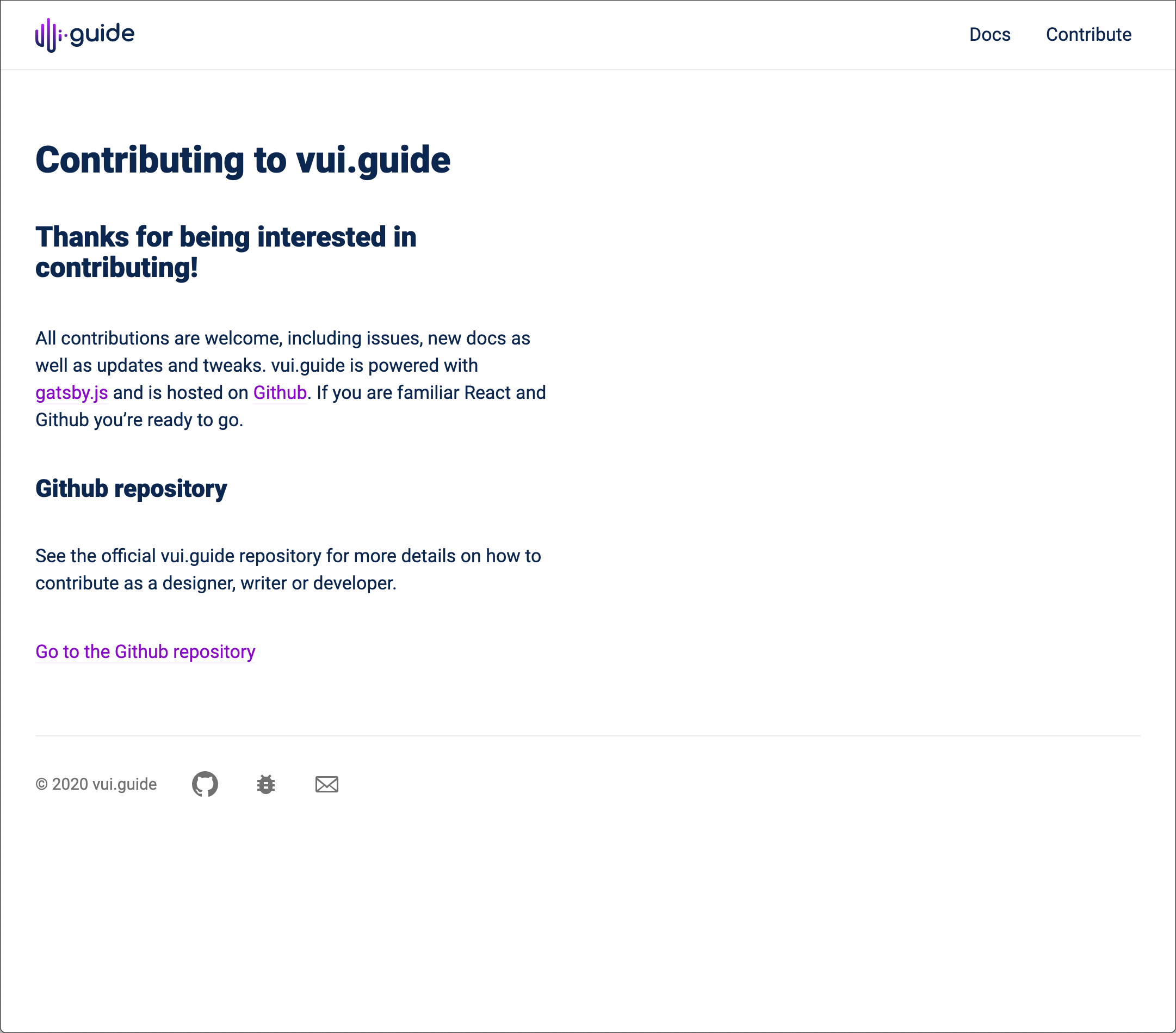 # Abgabe Diplomarbeit ## Website [vui.guide ansehen](https://www.vui.guide) ## Repository [Github-Repository ansehen](https://github.com/larsmaeder/vui.guide) ## Abstract [Abstract lesen](https://larsmaeder.github.io/vui.guide-abstract/) ## Preview Ausschnitte aus meiner Arbeit. Für ein vollständiges Erlebnis siehe url oben. ### Home  ### Introduction  ### Artikel  ### Contribute  ### Checklist