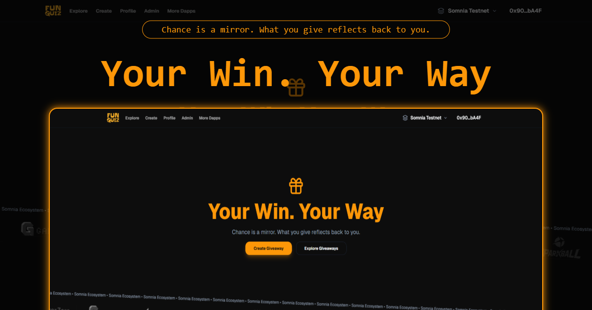 - Create & Join Giveaways: Users can create giveaways by paying a small fee in the native token (e.g., STT). Participants can join by also paying a fee.
