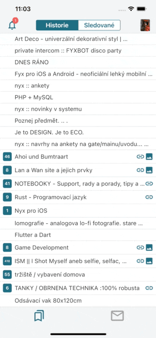 Fyx je neoficiální mobilní klient (Android a iOS) pro diskuzní server Nyx.cz ve Flutteru.