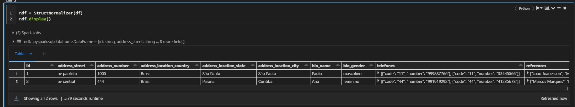 new_df = StructNormalizer(df)And by doing that, all the struct fields will be avaliable at simple columns in the dataframe, preserving their data types: