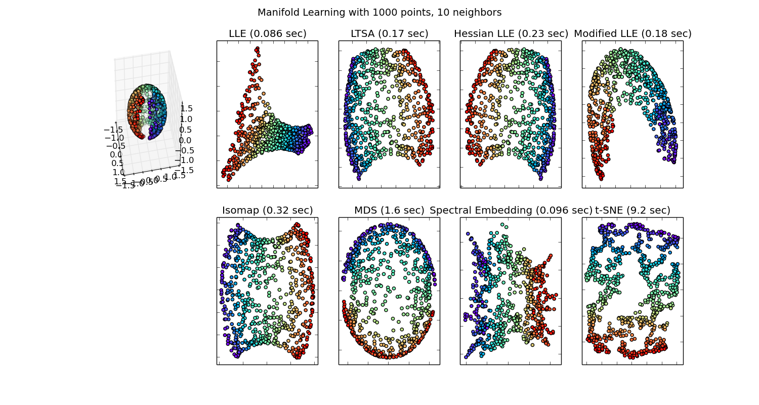 What are the alternatives and how does this one compare? Alternatives are PCA, and MDS for linear data and t-SNE for non-linear. There are actually many Manifold learning methods which can be seen here and newly published in 2018, UMAP