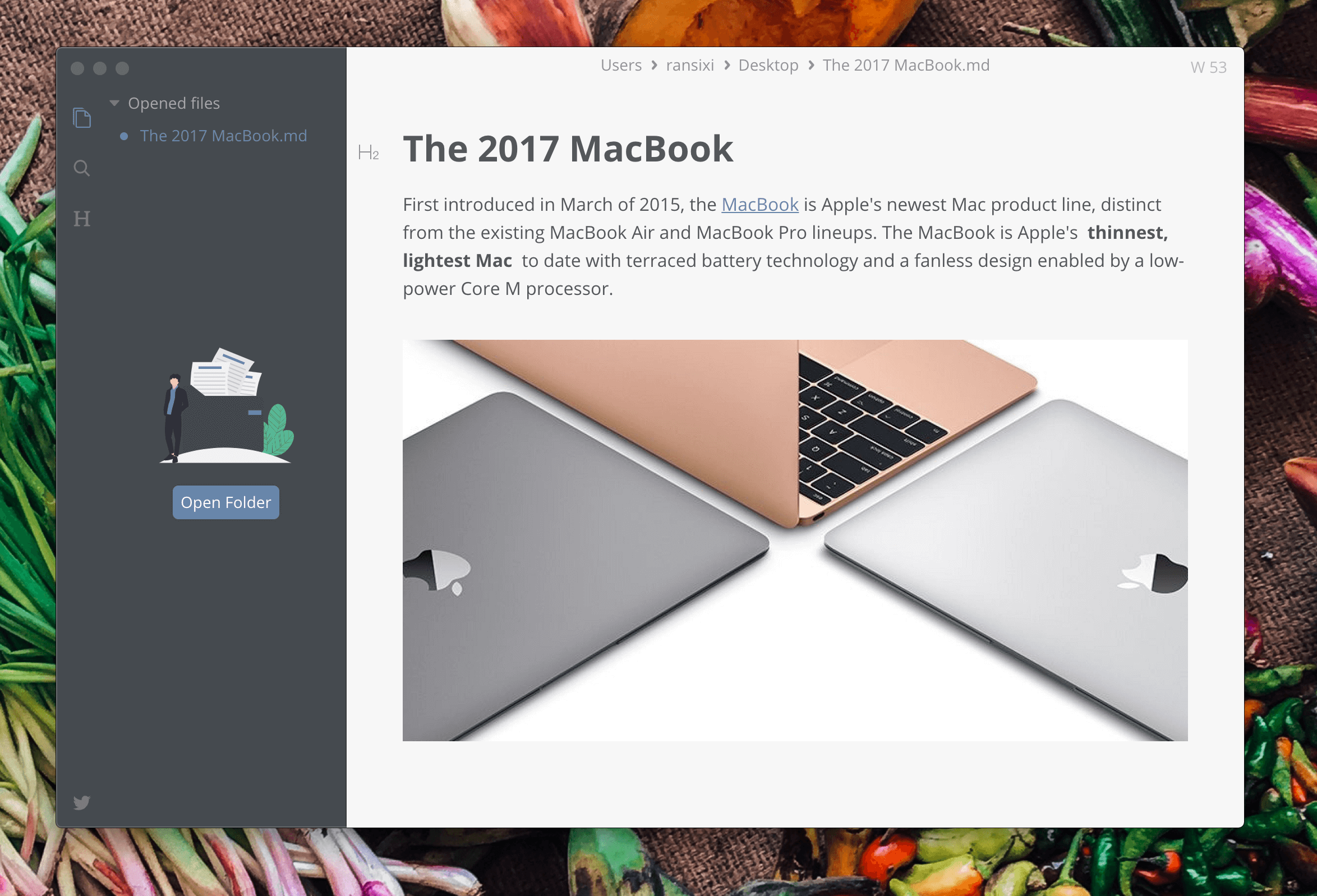 - Realtime preview (WYSIWYG) and a clean and simple interface to get a distraction-free writing experience.
