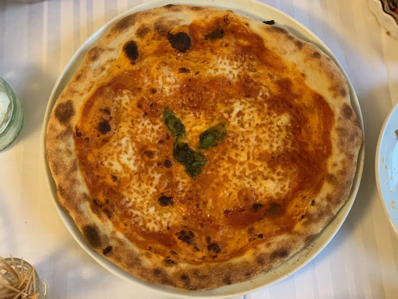 The Neapolitan pizza is characterised by a relatively high edge and a thin center of the pizza. The only ingredients required to make the dough are flour, water, salt and yeast. Historically sourdough has been used as an alternative to yeast.