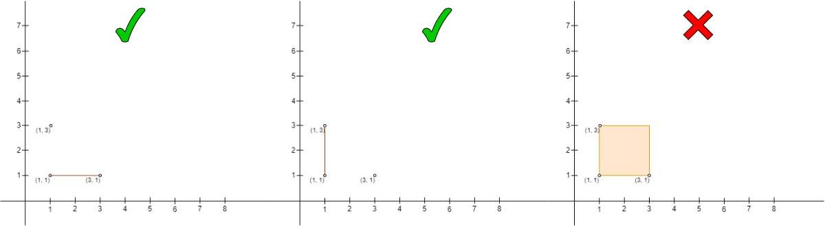 This approach efficiently checks all possible pairs of points and validates them against the given conditions, ensuring correctness while maintaining clarity. The complexity is O(n3), which is feasible given the constraint that |