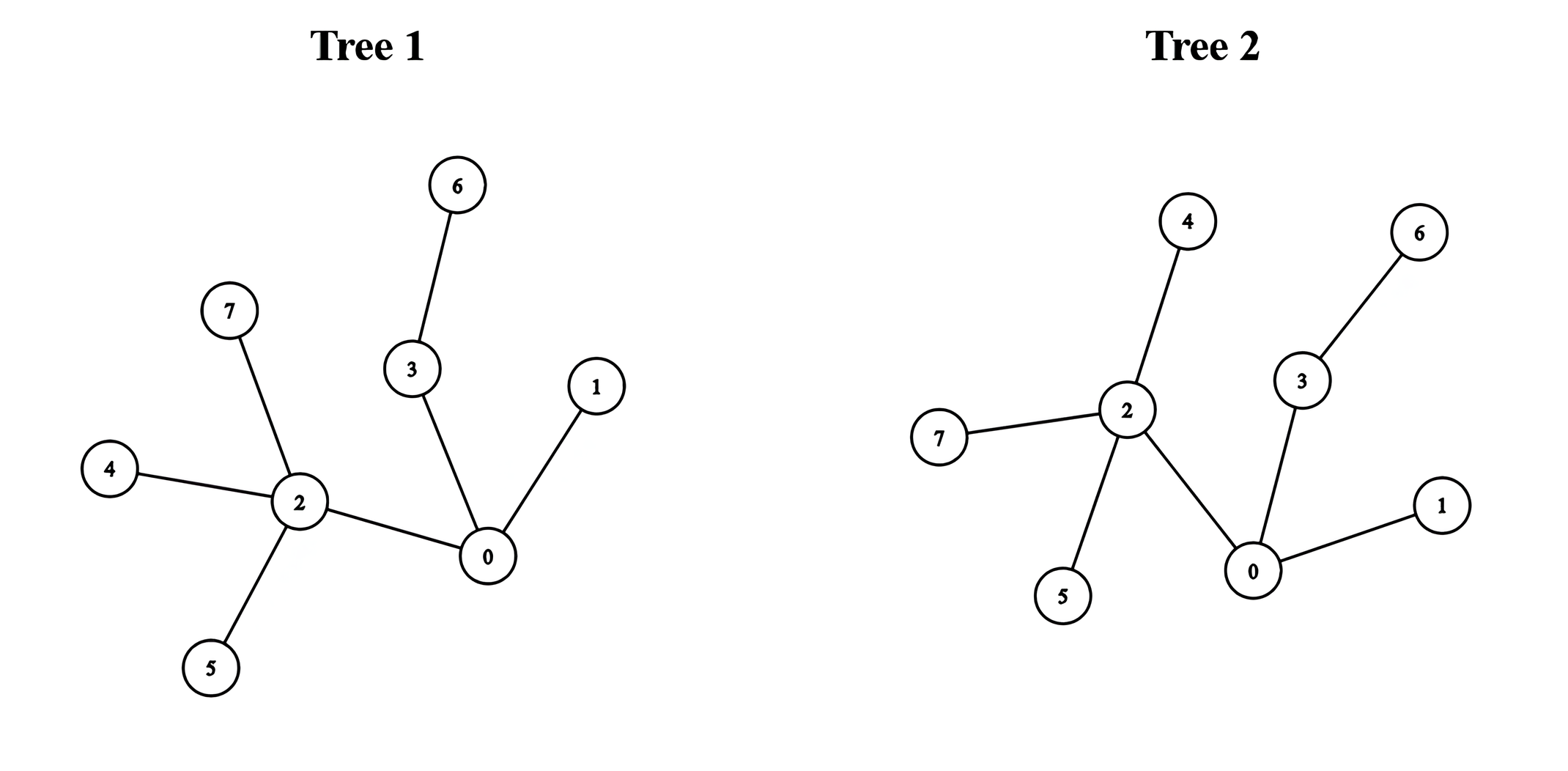 Topics: There exist two undirected trees with You must connect one node from the first tree with another node from the second tree with an edge. Return the minimum possible diameter of the resulting tree. The diameter of a tree is the length of the longest path between any two nodes in the tree. Example 1: