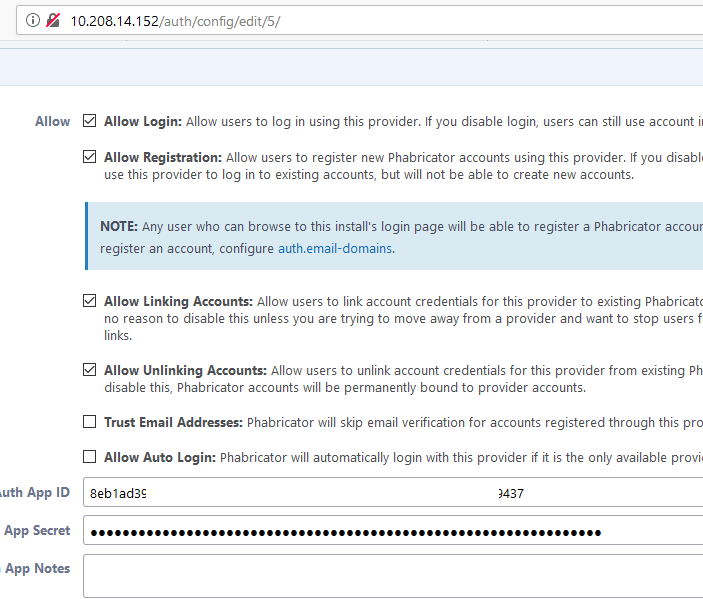 - Placed both files mentioned above into VirtualBox's /apps/phabricator/phabricator/src/applications/auth/provider