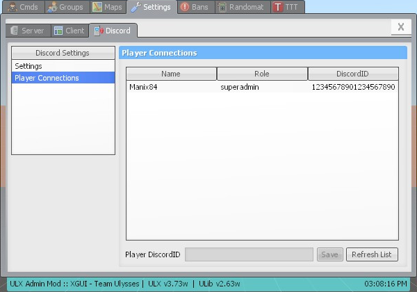 - "Player Connections" - You can add a Steam/Discord ID connection from the ULX menu.
