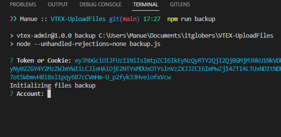 Al ejecutar el comando npm run backup en la terminal debes proporcionar el token y el account de la cuenta a la que quieres desplegar.