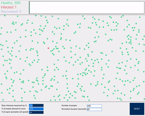 After reading the Washington Post article about the speed of the coronavirus, I got to thinking about how I could rebuild such simulations. Hence, this project was born.