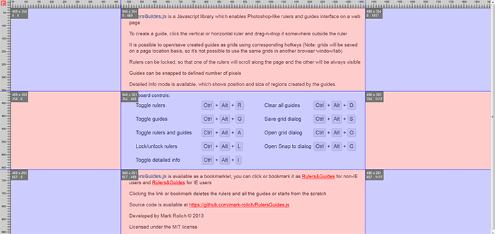 This Javascript package creates Photoshop-like guides and rulers interface on a web page.