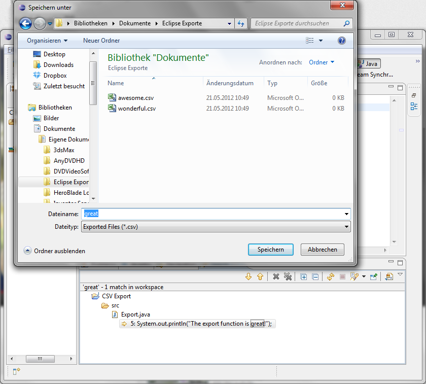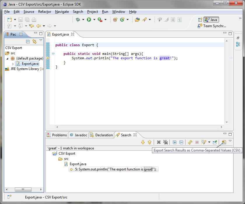 Eclipse Search result export to CSV Fork from https://sourceforge.net/projects/csv-export/ Основные возможности Экспорт результатов поиска в CSV в кодировке UTF-8