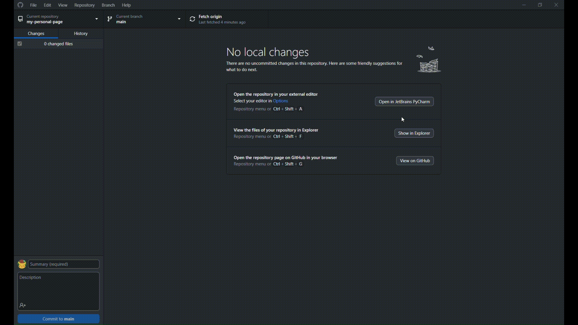 - Otvorí sa nám okno v GitHub Desktop
