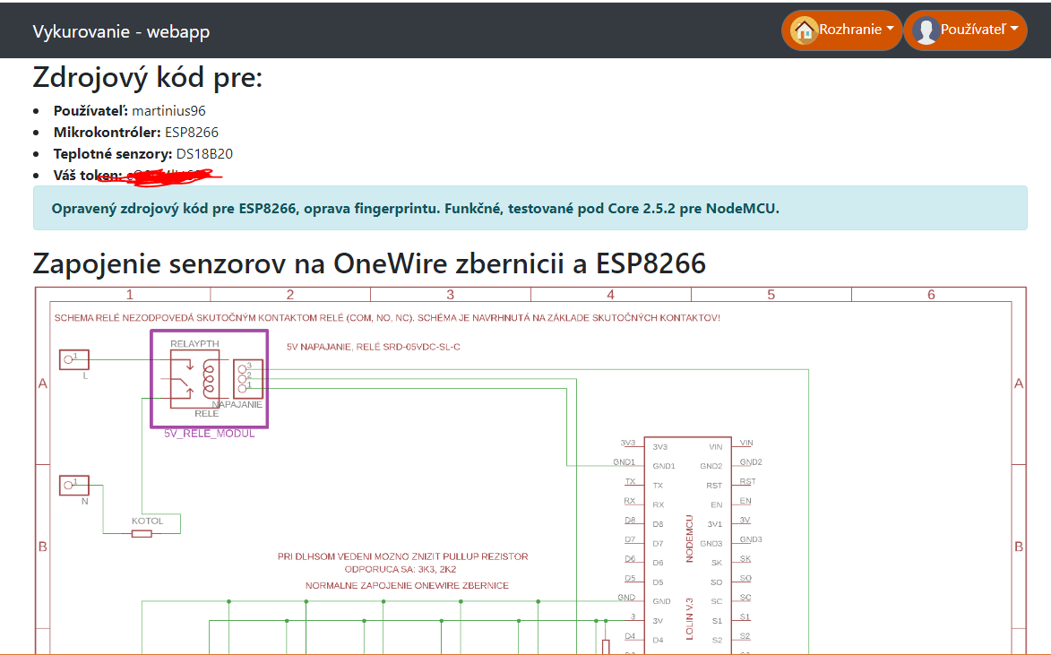 - Každému používateľovi je priradený token (Api kľúč), ktorým mikrokontróler zapisuje a číta z webového portálu