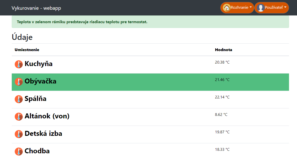- Možnosť zmeny názvov miestností, riadici teplomer