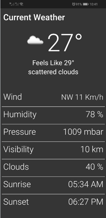 Android Weather Forecast App implemented in MVP Architecture using Kotlin that enable users to have instant access to weather data.