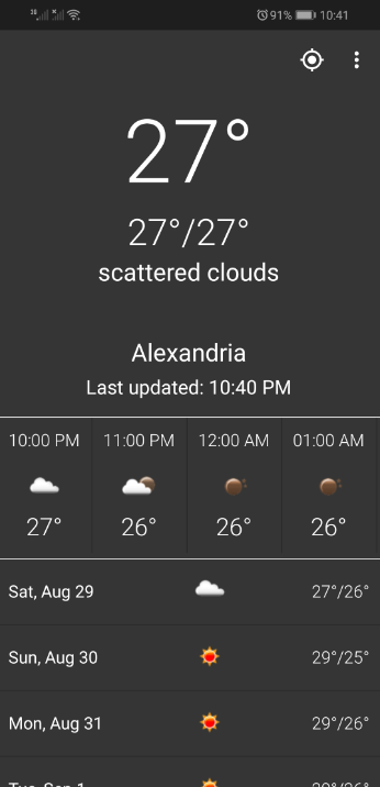 - Weather data in Celsius and Fahrenheit