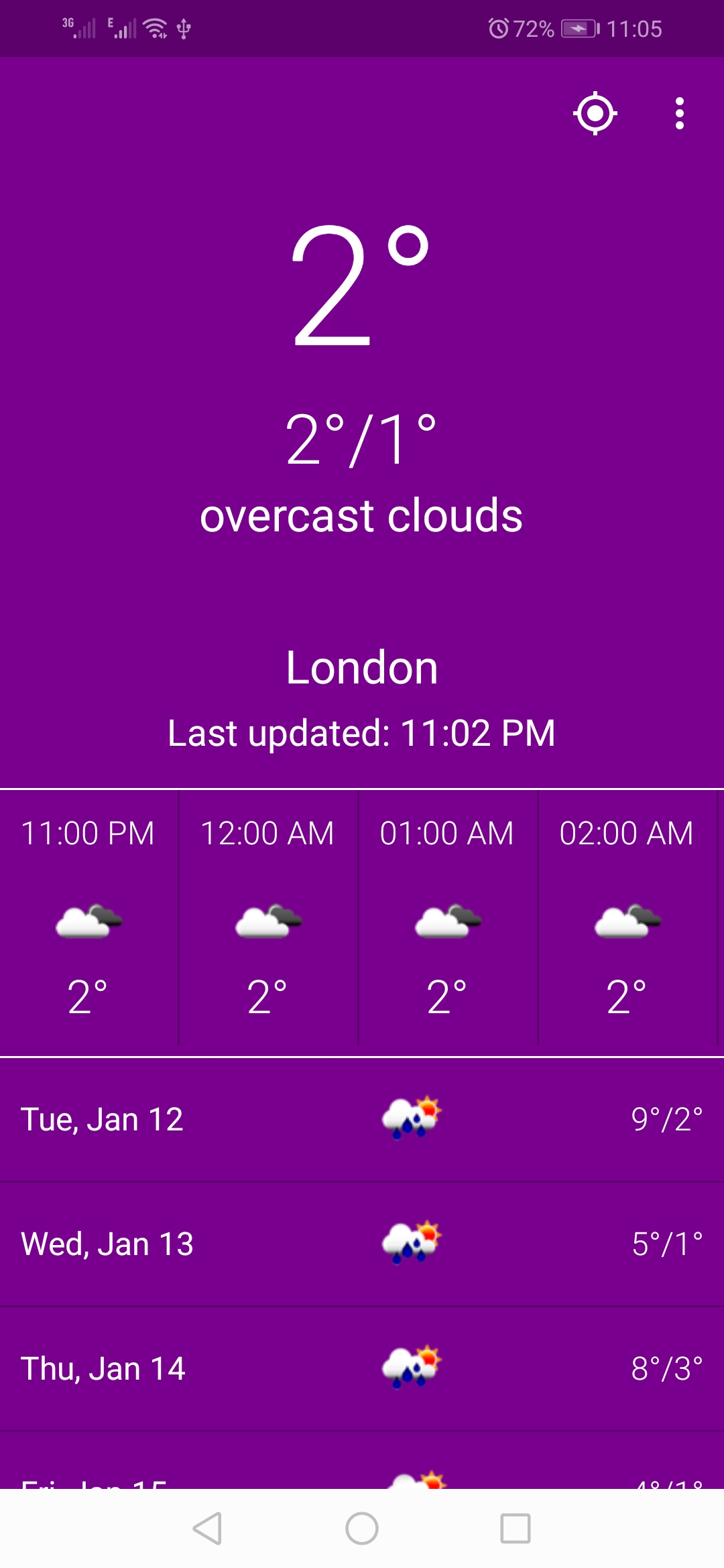 - Weather data updates every 2 hours