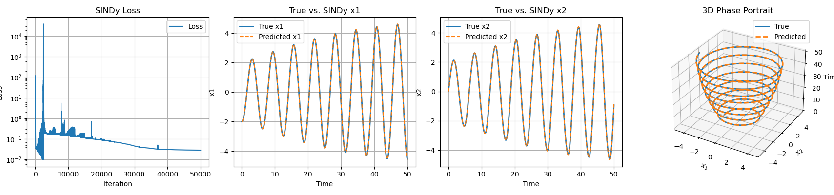 In the future, it would be interesting to study why combining the Adam-SINDy method with the GENERIC formalism failed to recover the correct expression for the energy. This might be due to finding the appropriate training parameters or possibly an error in the implementation itself.