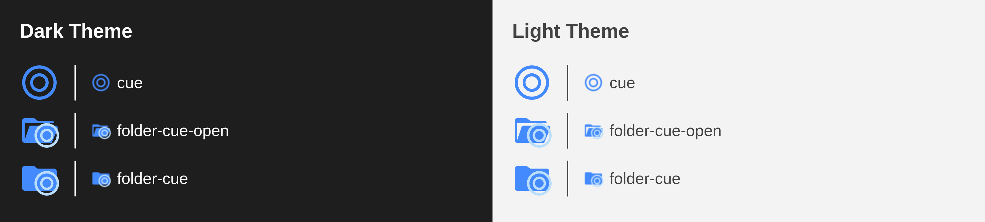 Added icons for cuelang .cue files and cue/cues folders. Note: the official cuelang colors are very dark blues (