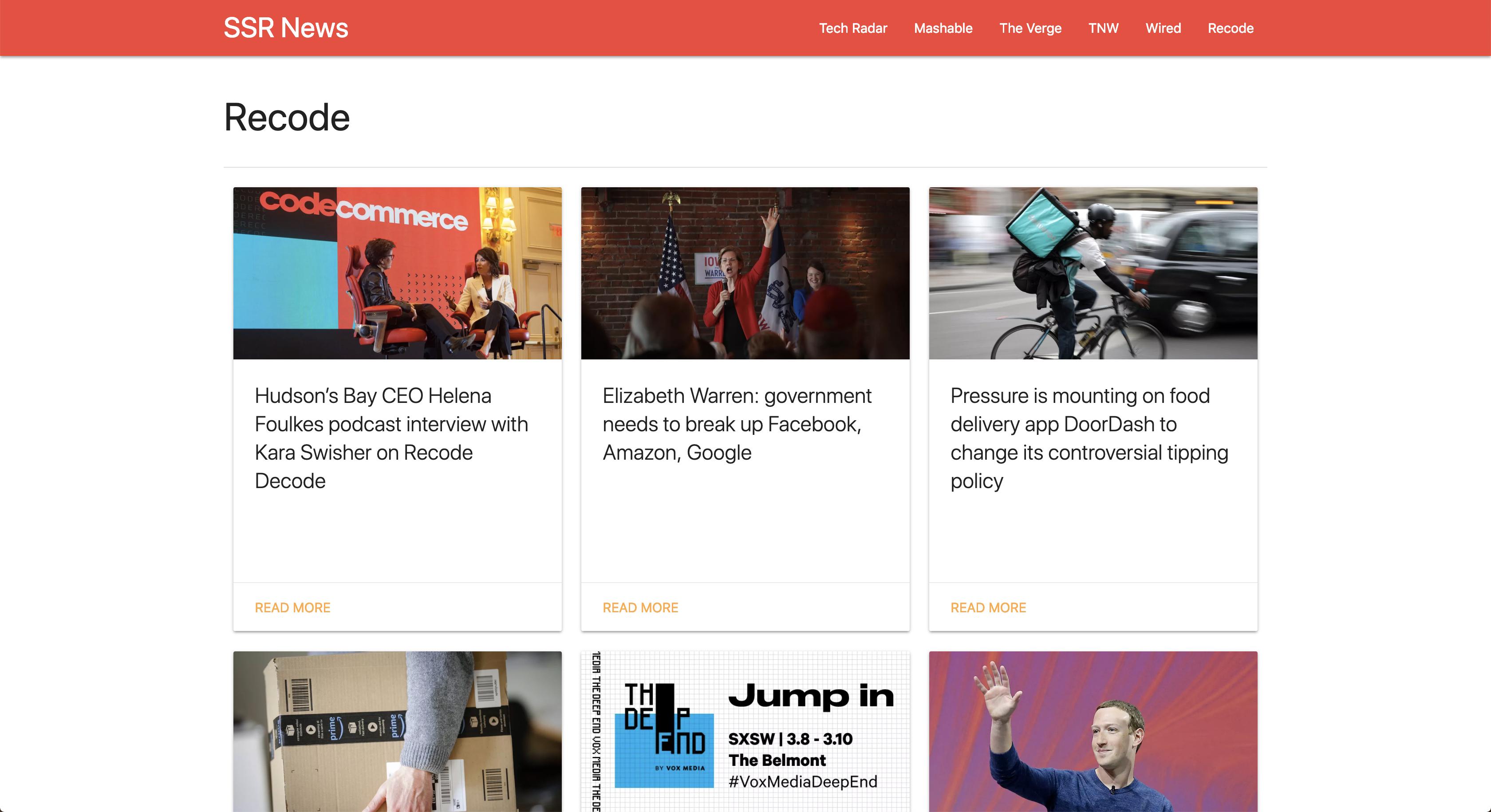 React Server Side Rendering demo project. This project uses News API under the hood.