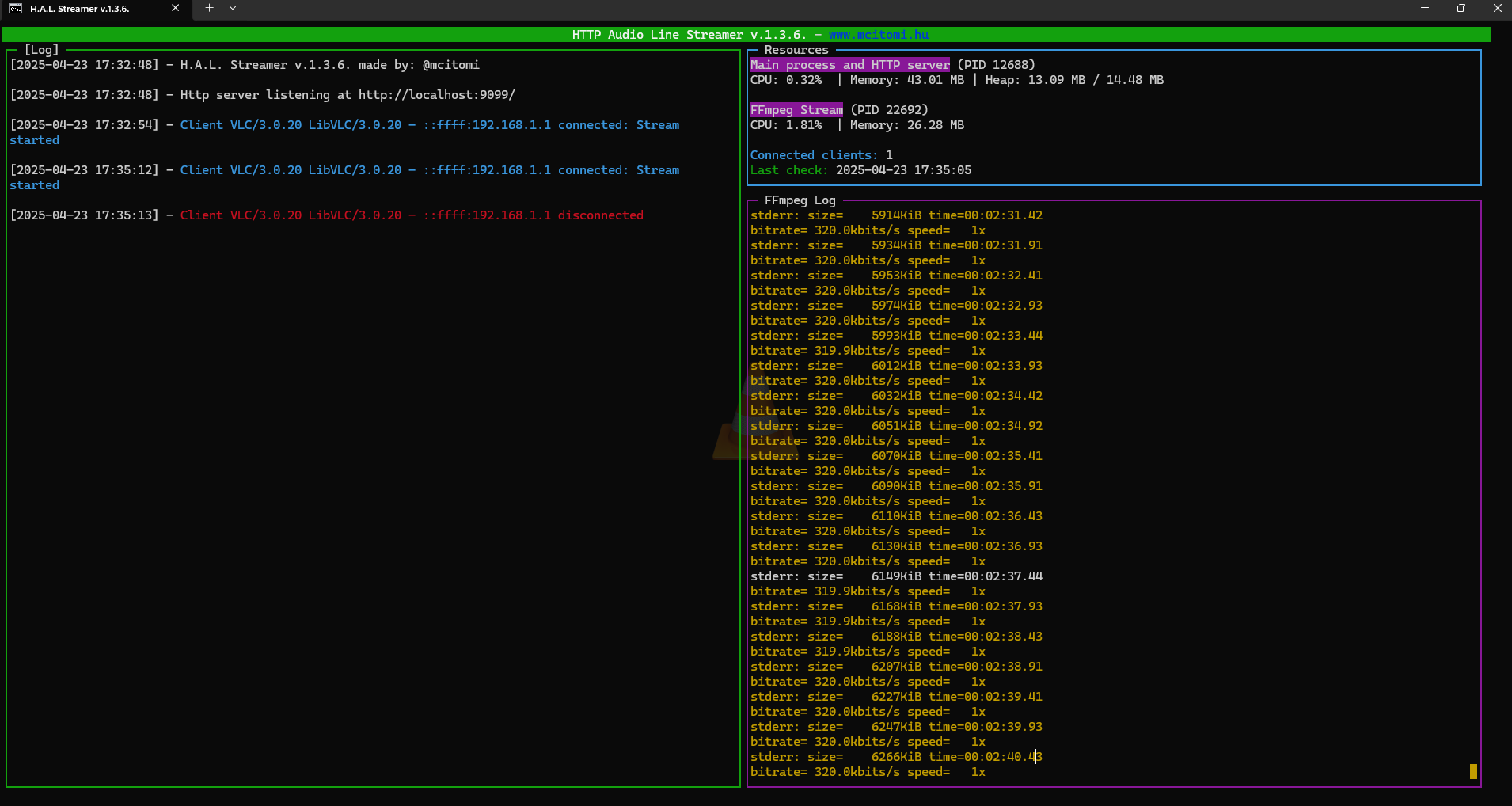 - Client / listener counter added.