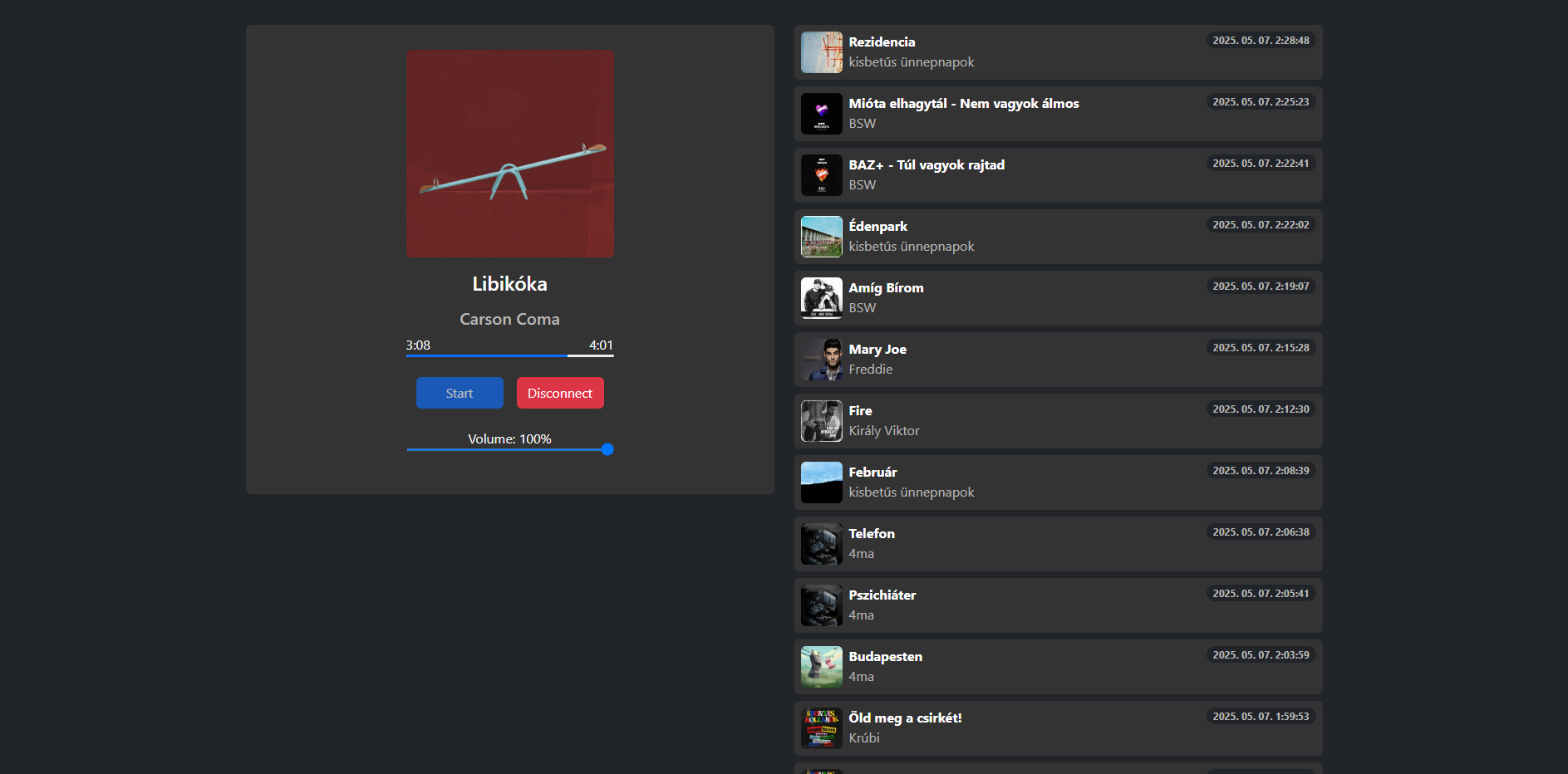 - The web player: uses vanilla javascript and html, saves volume and theme settings to local storage (the plan is to create a simple react-based application for it in the future, the current one is just a test/sample)