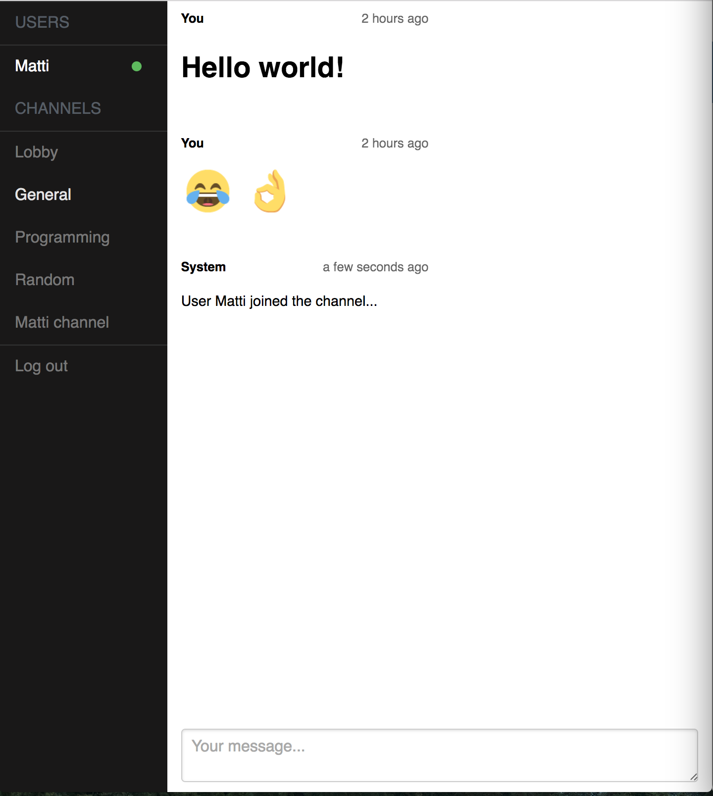 Socket.io, IRC-like chat application, made with Vue.js. Originally made for Reaktor, as part of their summer internship challenge.