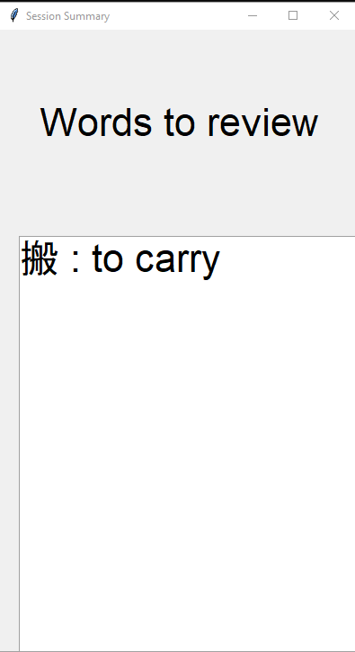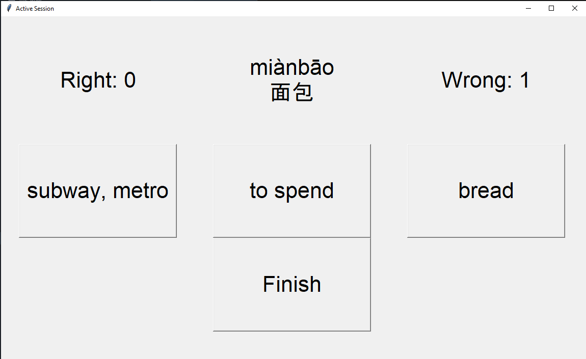 HSK 3 Study Game Tkinter based desktop application to effectively memorize HSK 3 vocabolary Getting started pip3 install -r requirements.txt Study with pinyin python3 main_py.py With pinyin python3 main_no_py.py With pinyin! Without pinyin!