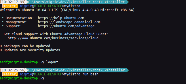 HRESULT MyLinuxDistroLauncher::LaunchDefault()