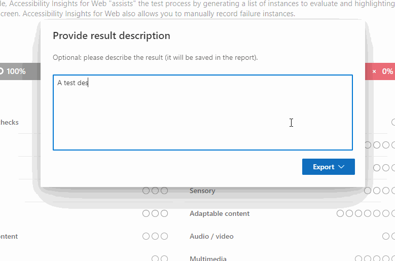 Currently, opening the export dropdown clears the user's description in the export dialog. If they then download an export, the description will be there. If they don't download at that moment, the description is lost. This PR updates the behavior to be in line with current production behavior wherein the user's description is not cleared until they start a new assessment.