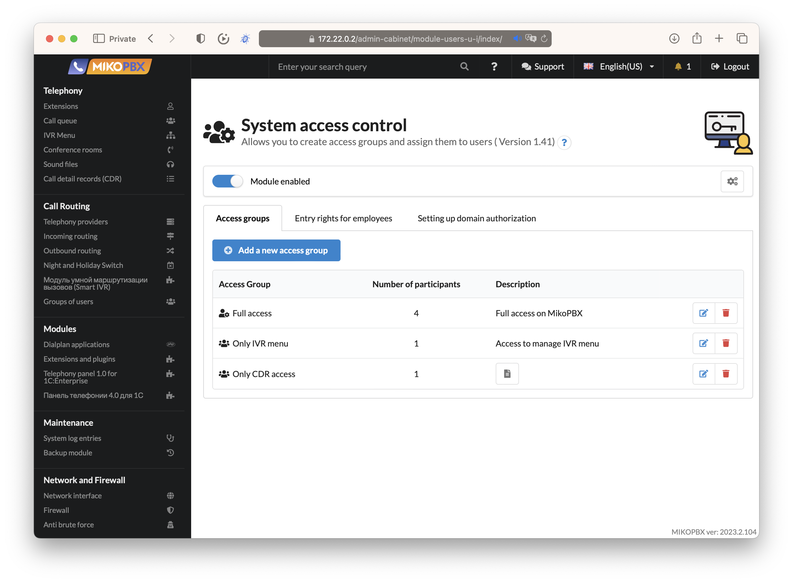 - Navigate to Modules → User Access Control
