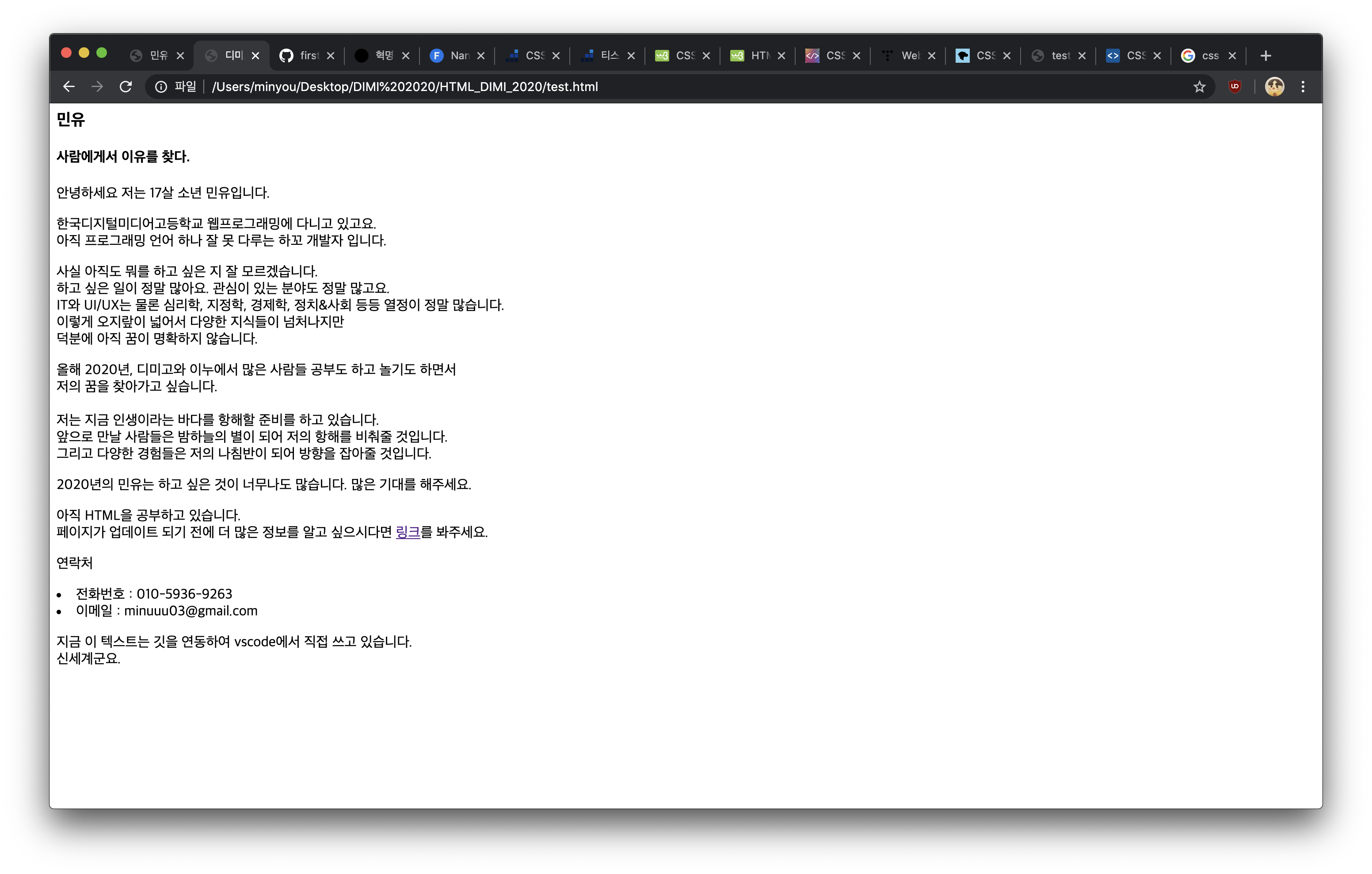 한국디지털미디어고등학교 웹프로그래밍과 19기 민유입니다.