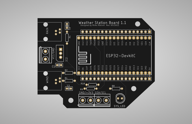 This project aims to build a weather station board for recording and uploading common weather data. The measured data can be uploaded to WUnderground or stored and displayed on a dashboard using a local Thingsboard server.