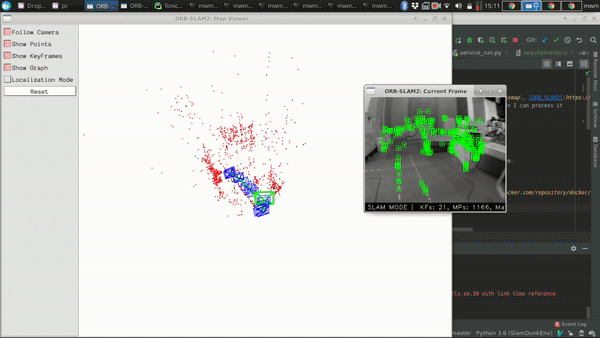 - SLAM mapping, and navigation implemented with ORB_SLAM2 and its custom fork, custom python bindings, and serialisation.