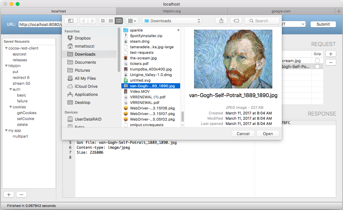 brew install --cask cocoarestclient- Make GET, PUT, POST, DELETE, HEAD calls