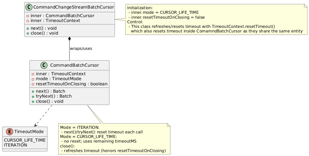CommandBatchCursorcarried two unrelated concerns, including the resetTimeoutOnClosing flag, which existed solely to let