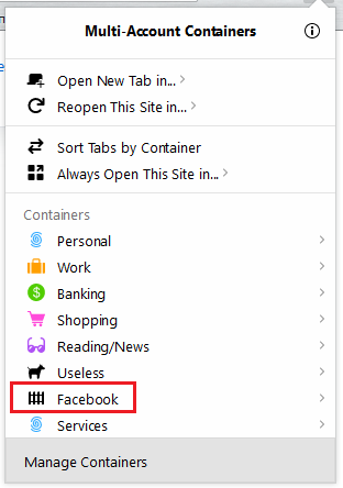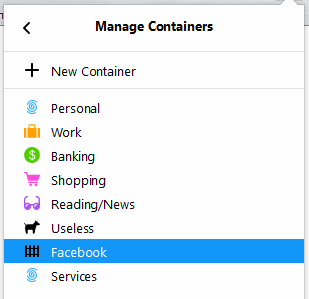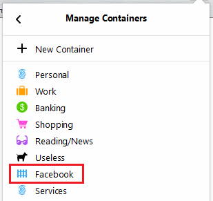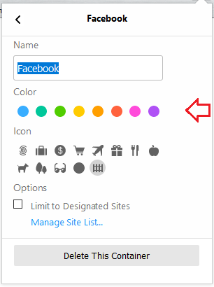 - Locate desired container (e.g. Facebook) that has assigned black color to it